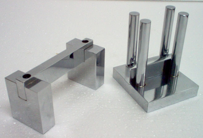 El dispositivo está compuesto por dos mordazas de acero, con una cara cilíndrica de un radio de 25mm, un ancho de 15mm y una longitud mínima de 50mm.